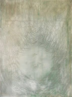 These paintings manipulate the fragile nature of distemper which gradually fractures under the tension created by the compositional parameters he applies. Once he relinquishes his role as painter, a process is set in motion that is no longer within his control; the painting follows its own course, its future uncertain.